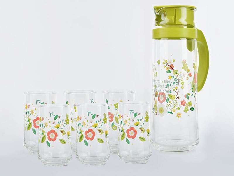 Bộ bình thủy tinh Patio 4 ly Hoa màu hồng