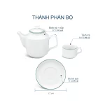 Màu sắc tươi mát: Đường viền chỉ xanh lá mềm mại chạy dọc theo vành bình và tách trà, tạo nên điểm nhấn đặc biệt, không bao giờ lỗi mốt và mang lại sự thư thái cho người thưởng thức.