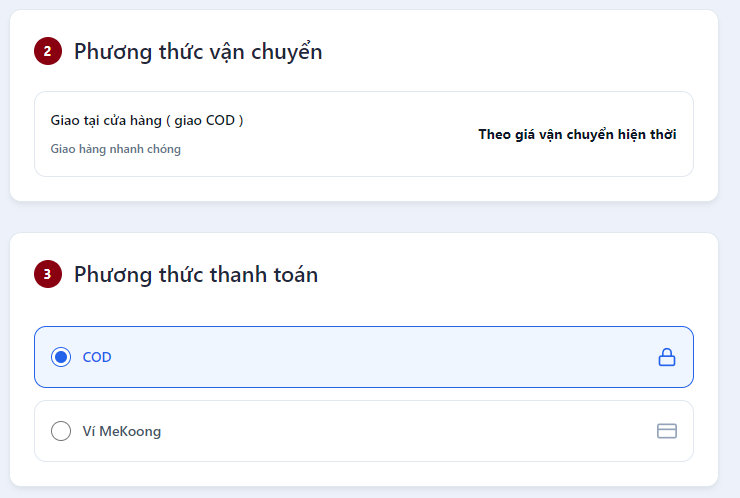 Mekoong hỗ trợ nhiều hình thức thanh toán khác nhau để khách hàng lựa chọn.