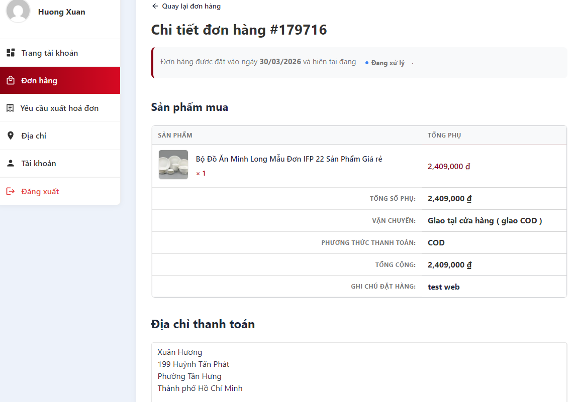 Sau khi đặt hàng thành công, bạn có thể theo dõi đơn hàng trong tài khoản cá nhân.