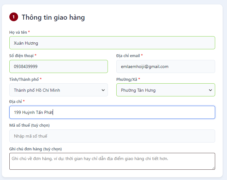 Nếu bạn đã đăng nhập tài khoản, hệ thống có thể tự động điền thông tin đã lưu.