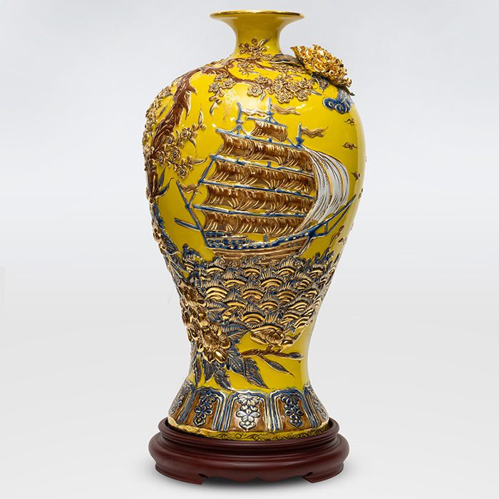 Giới Thiệu Mai bình tích lộc Thuận Buồm Xuôi Gió vẽ vàng men vàng số 2
